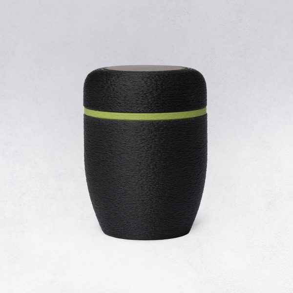 Miniurne, schwarz matt - Ring: grüngelb, funkelnd